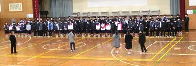 朝から3年生は卒業式証書授与の練習です。この後球技会を行うため、ジャージでの練習です。やはり所作は難しいようで、慣れない動きに戸惑っていました。右足から?左足から?間違えても、堂々としていれば良いのです。とにかく、呼名には大きな返事で!