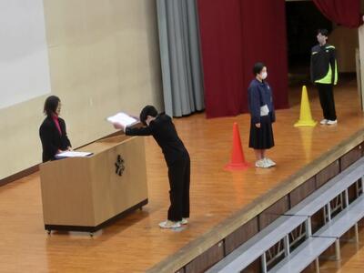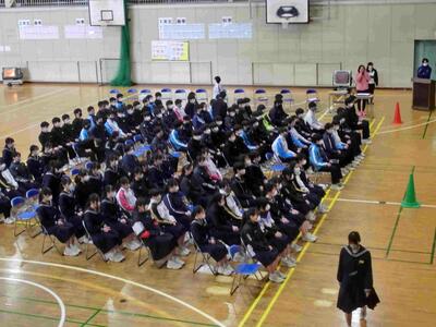 卒業式の練習が進んでいます。一つ一つの動き、所作を確認しながら緊張感を持って練習する姿があります。気が緩むところではありますが、そうならないのが本校の3年生。立派です。