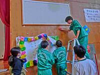 4校時に2年生中心に会場準備を行っています。手際よく進めていました。開演まであと少し。楽しみですね。※画像、ダイヤルを間違えて、アートバージョンで撮影してしまいました。