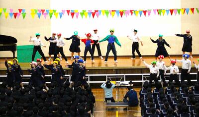 2年生の企画です。「スーパーマリオ(FUKIKITA)ブラザーズ」「合唱 空も飛べるはず」、練習の成果が実りましたね。何度かブログでも紹介をしてきましたが、長い時間をかけて取り組んできました。見ていて楽しい、そして最後の合唱は胸を打たれる歌声でした。3年生への感謝の気持ちをしっかりと表せましたね。
