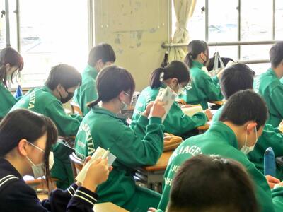 職員室近くの視聴覚室から、きれいな歌声が聞こえてきました。2年生が「三送会」の練習をしていました。練習期間もあと一週間になりましたね。「歌わされている」のではなく、「自ら歌っている」から、あのきれいな歌声になるのですね。気持ち、伝わりますよ!