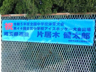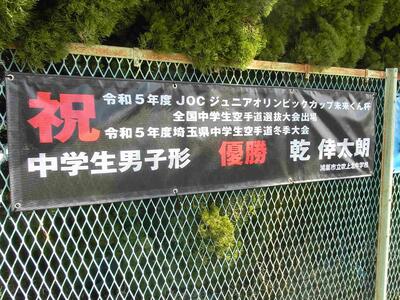 全国大会出場をお祝いする横断幕が完成しました。その栄光をたたえたいと思います。おめでとうございます。校舎前のフェンスに掲示してありますので、お寄りの際は是非ご覧ください。