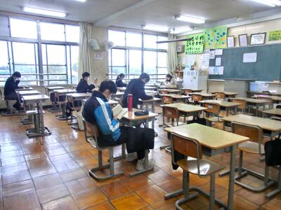 ガランとした3年生の教室。登校した進路決定者は、朝の会後下校となります。仲間の結果を待っていてください。3年生の先生方は、この後合否結果について、体制を整え待つことになります。