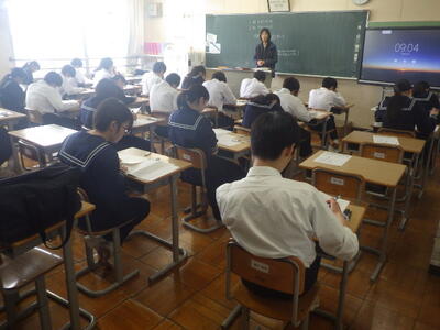 今週の3日間にかけて、3年生では例年行っている全国学力学習状況調査(国語・数学・英語・質問)を各教室にて実施しました。全体的には、どの生徒も粘り強く、そして実に真剣に取り組んでいる様子が大変良く伺えました。結果については後日しっかりと振り返り、今後の学習にも繋げて欲しいと思います。